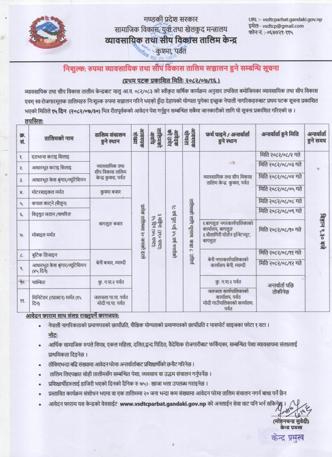 » निशुल्क: रुपमा व्यावसायिक तथा सीप विकास तालिम संचालन हुने सम्बन्धी सूचना !