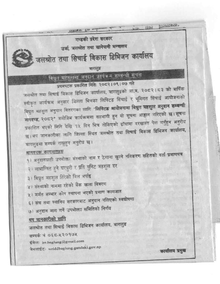 » बिधुत महशुल अनुदान सम्बन्धि सूचना