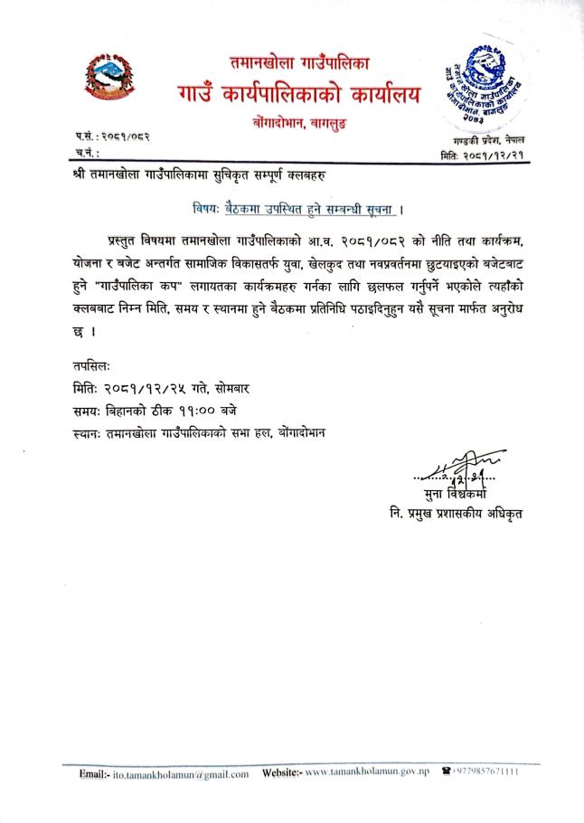 » बैठकमा उपस्थित हुने सम्बन्धी सूचना ।