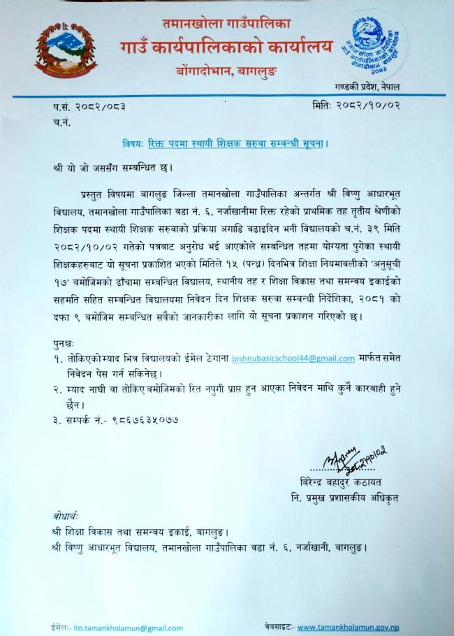 » रिक्त पदमा स्थायी शिक्षक सरुवा सम्बन्धी सूचना।