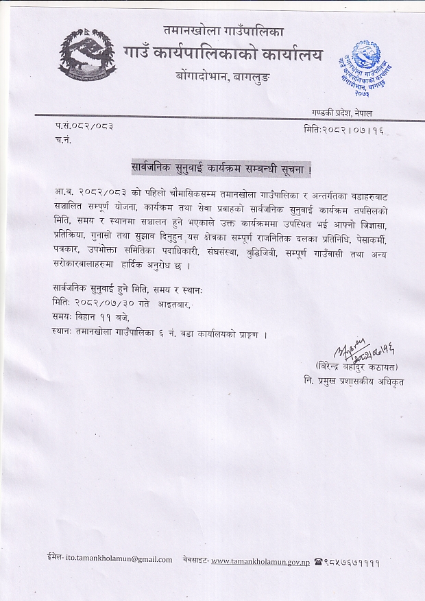 » सार्वजनिक सुनुवाई कार्यक्रम सम्बन्धी सूचना !