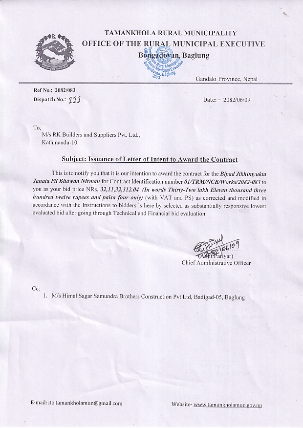 » LOI विपद जोखिमयुक्त जनता प्रा.वि. भवन निर्माण।